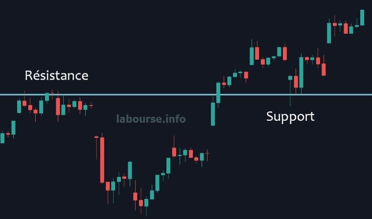 Ce qui caractérise une zone de support et de résistance, c’est le fait que ce sont des zones qui délimitent la fin d’une progression haussière ou baissière du prix, et ceci de façon répétée, soit sur une certaine durée de temps, plus ou moins longue. Arrivé sur la zone de résistance ou de support, le prix repart dans le sens opposé.